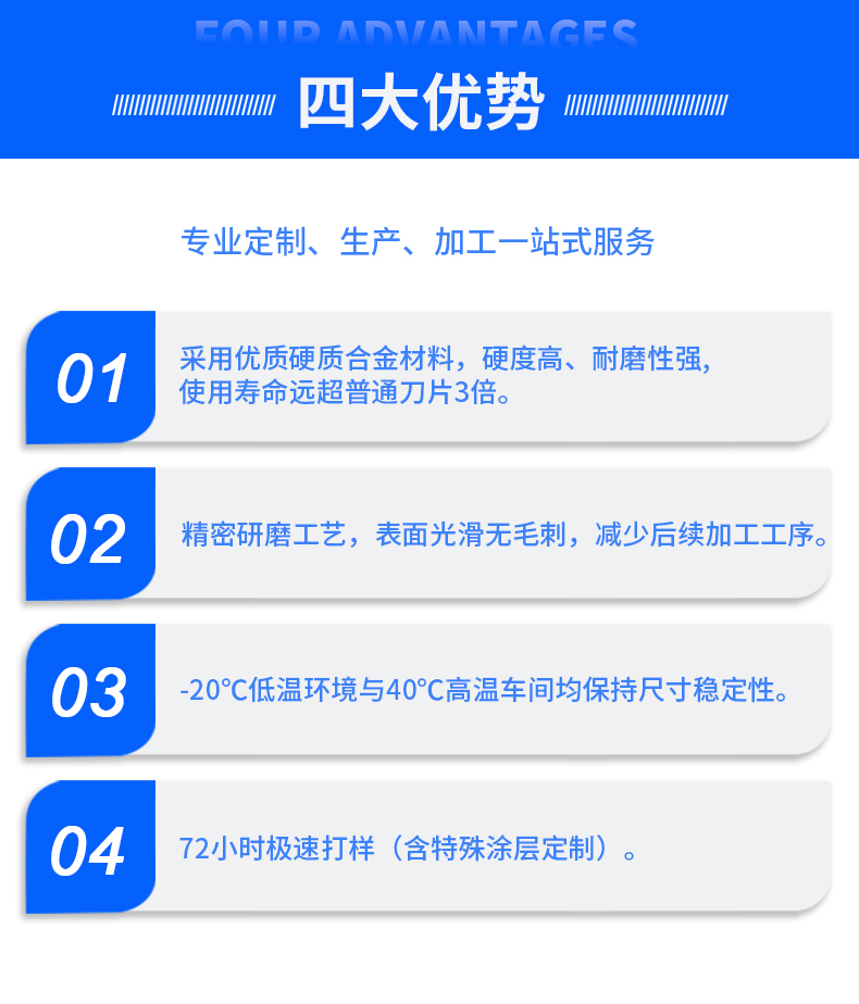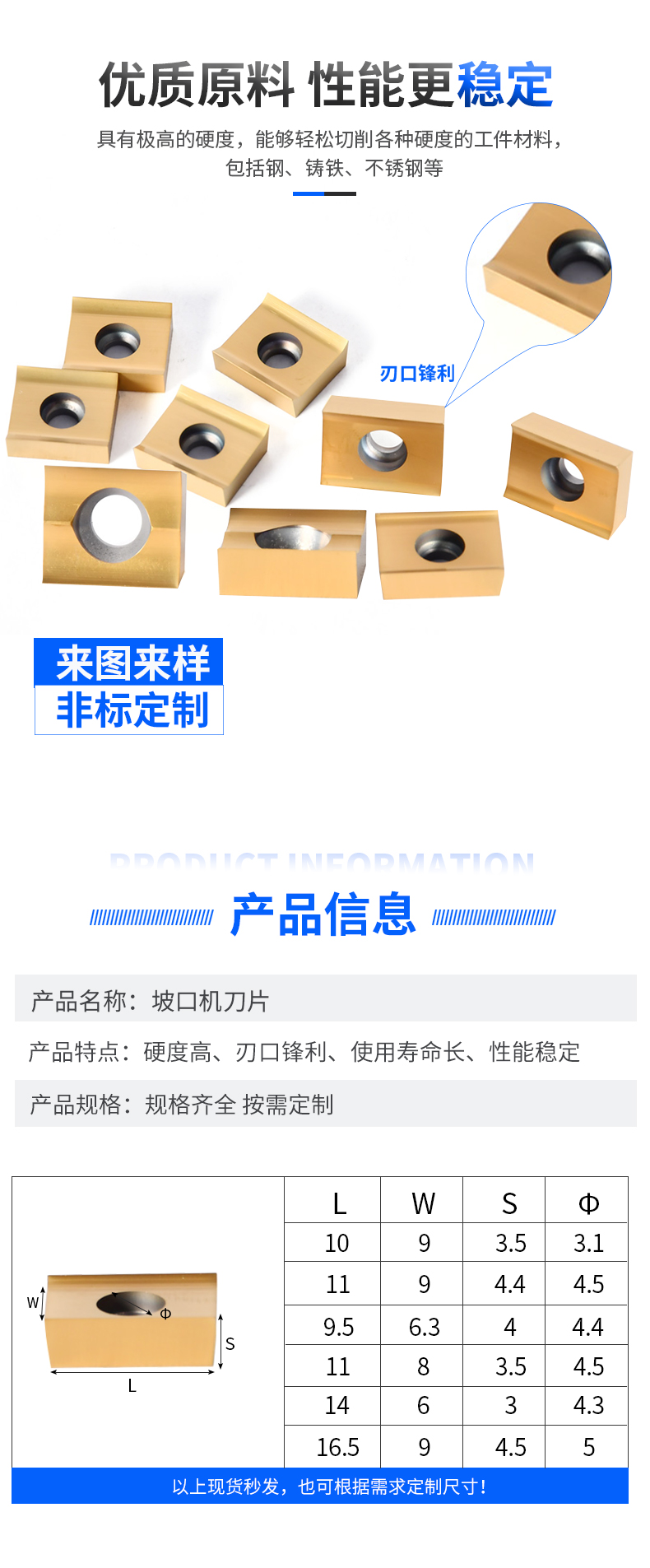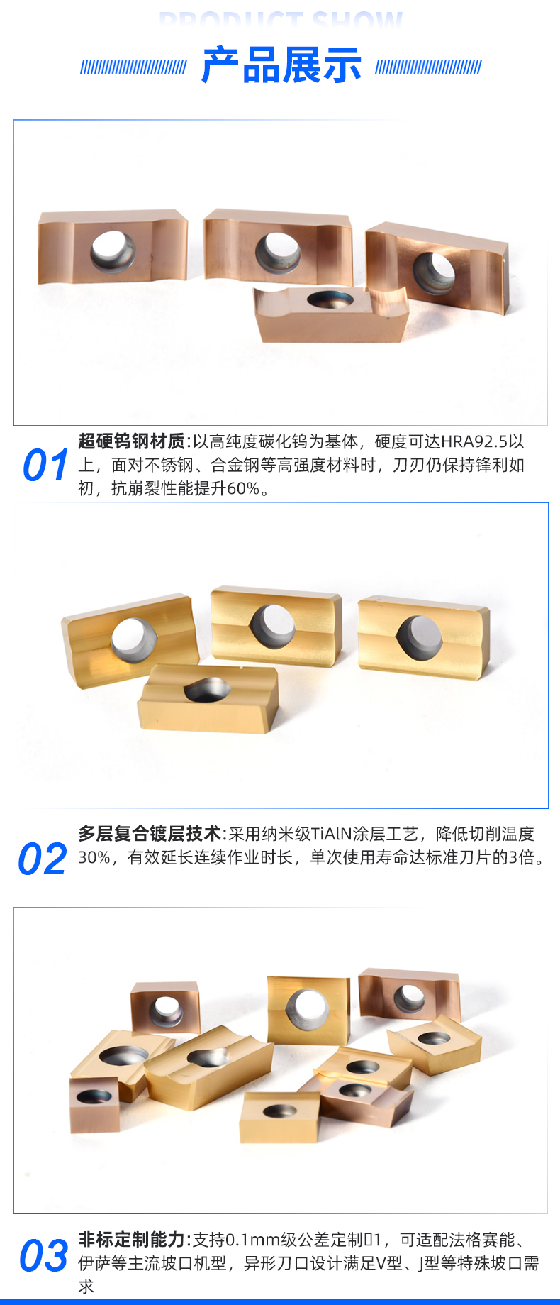 多元規(guī)格定制:支持刀片長度 50-300mm、刃口角度 30°-60° 定制,適配手持式、臺式等不同坡口機(jī)型號。