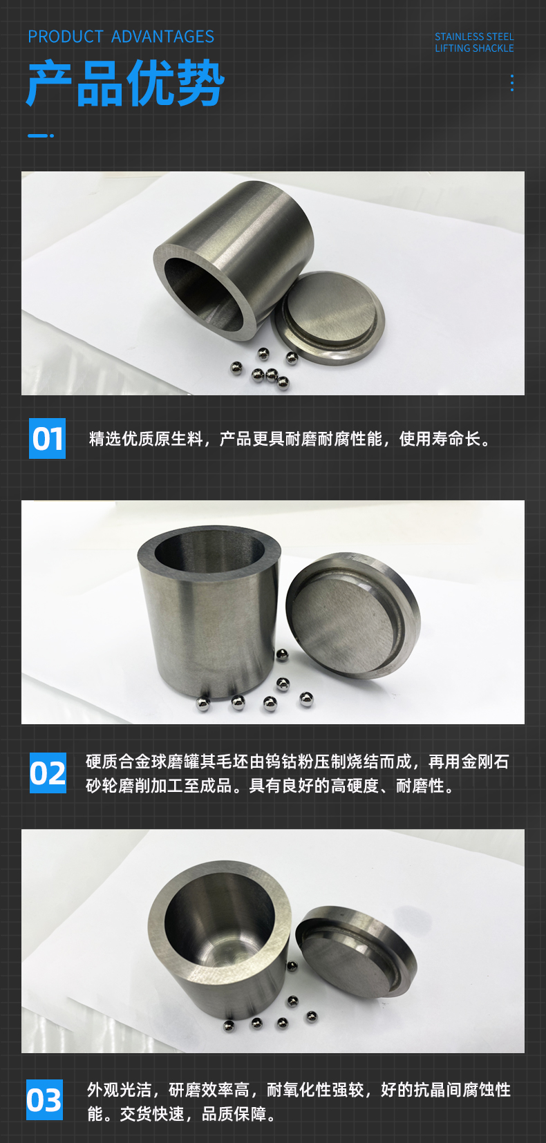 硬質合金研磨罐又稱碳化鎢研磨罐,由碳化鎢及鈷這兩種物質為主要成分的硬質合金因具有高硬度而******,因此,采用硬質合金為材料制作而成的硬質合金球磨罐具有良好的硬度和耐磨性。